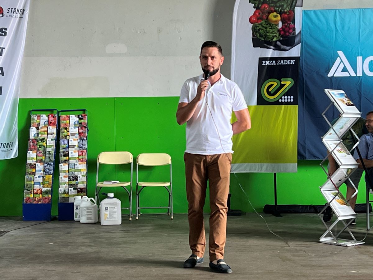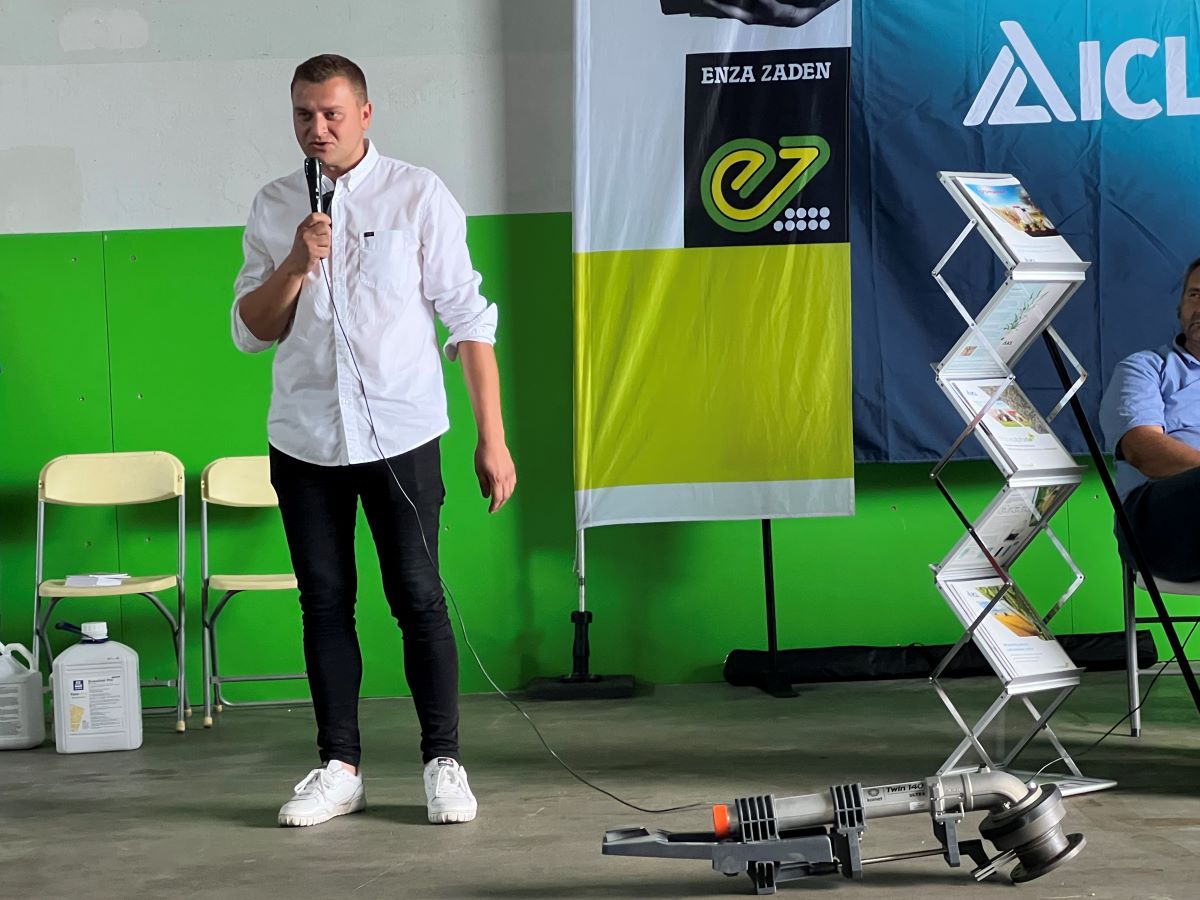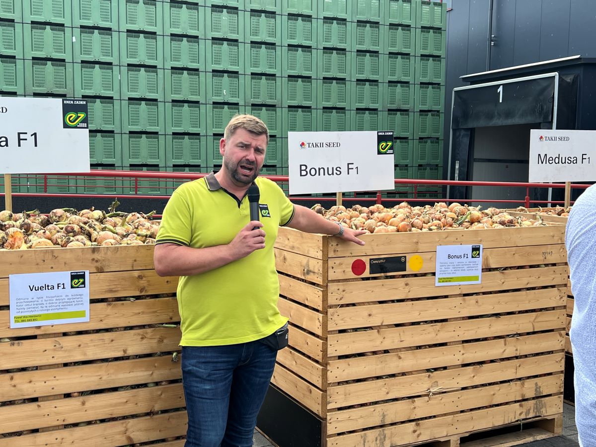 O odmianach cebuli pozostających w asortymencie Enza Zaden opowiadali w trakcie spotkania zgormadzeni w Chełmiczkach przedstawiciele firmy. Wydarzenie prowadził Paweł Wechterowicz, który jednak chętnie znajdywał czas także na indywidualne rozmowy z poszczególnymi producentami cebuli. Wspierali go Łukasz Bogaczyk, Krzysztof Jawor oraz Aleksandra Krzyżanowska. Głos w trakcie oficjalnej części zabrał także przedstawiciel Hurtowni Rolno-Ogrodniczej Janiak, dystrybutora nasion firmy Enza, Tomas Walas. Poinformował, że firma założona została w 2010 roku i stopniowo zwiększała asortyment oraz wkraczała na nowe pola aktywności. Charakterystyce odmian zaprezentowanych w trakcie wydarzenia poświęcony zostanie odrębny wpis.