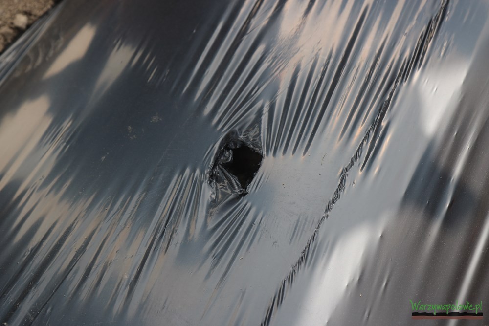 Maszyna wykonuje otwory w folii i umieszcza w nich nasiona
