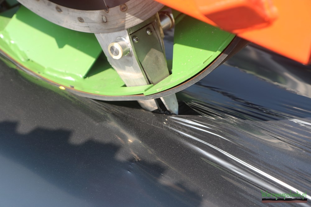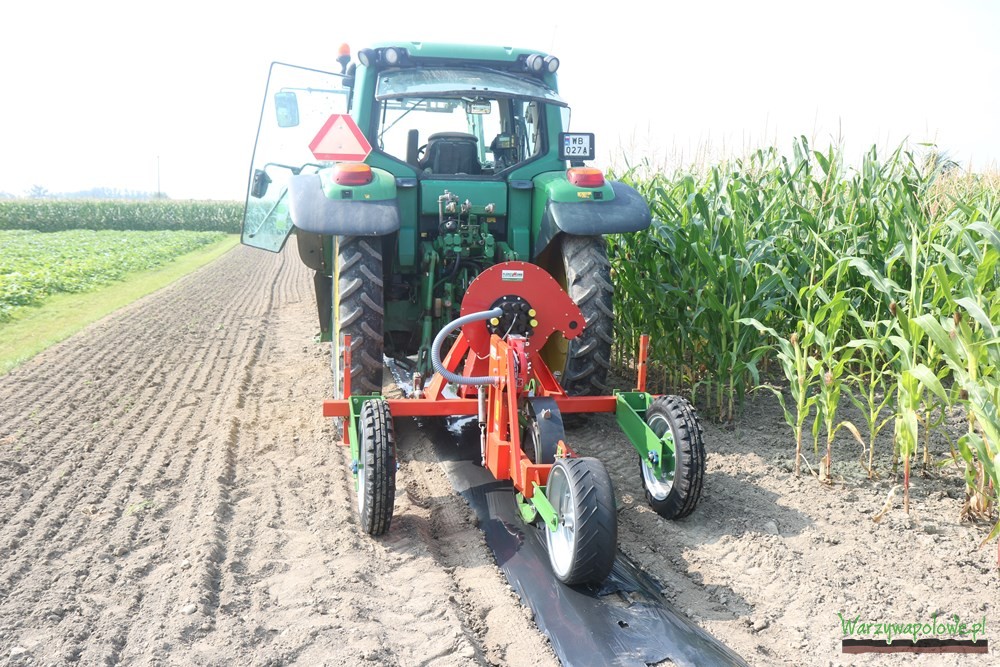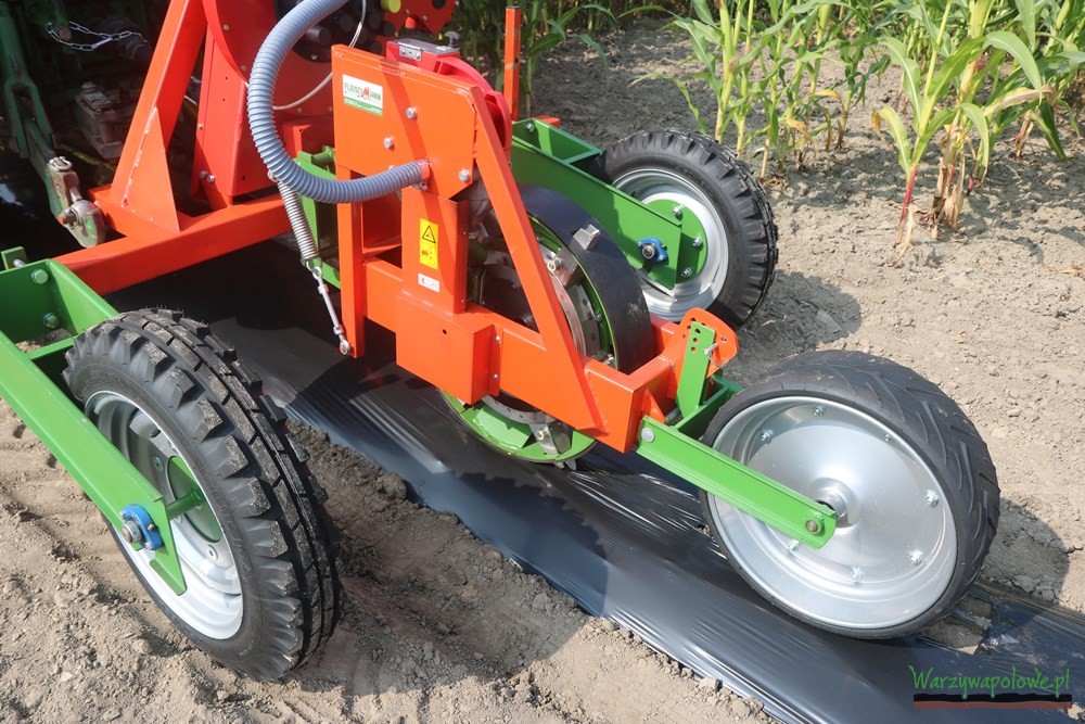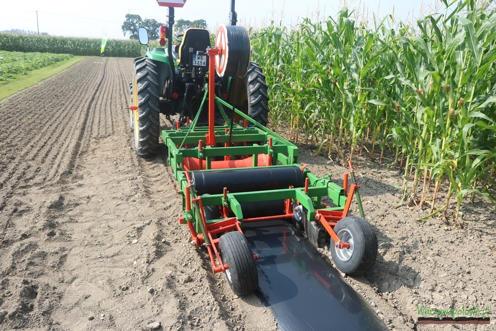 Urządzenie rozwija folię i linię kroplującą z prędkością 7 km h