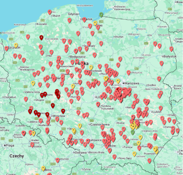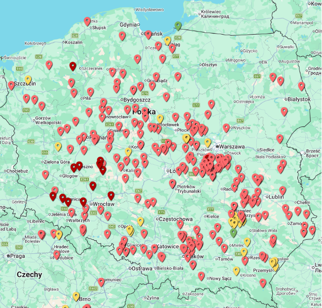 – Lubelszczyzna i Podkarpacie (dość liczne punkty)