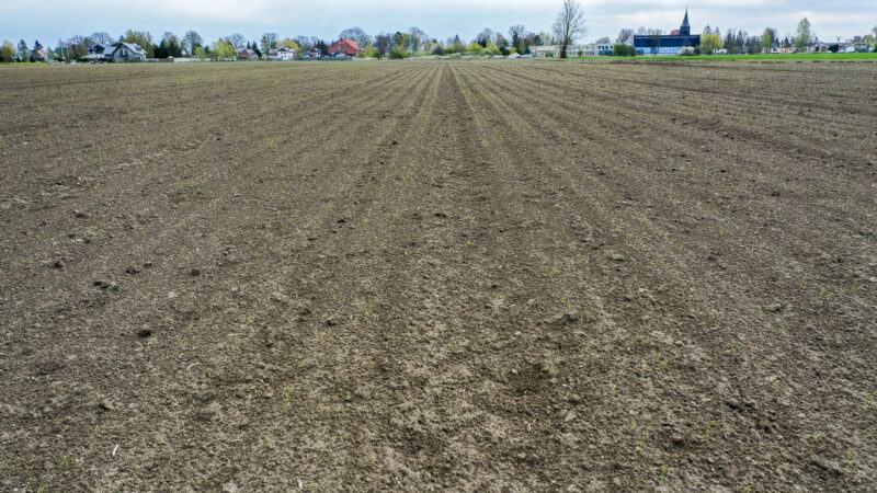 W tym roku siewy cebuli rozpoczęły w tym gospodarstwie 21 marca. Siewy wykonywano precyzyjnym siewnikiem Agricola na głębokość 2,5 cm. Dla odmiany Vision F1 wysiane zostało 780 tys. nasion na 1 ha, natomiast dla odmiany Progresion F1 nieco mniej, bo 730 tys. nasion/ha. Decyzja o tak wczesnym terminie rozpoczęcia siewów okazała się słuszna. Dzięki temu można było wykorzystać zasoby wody w glebie i uzyskać dobre wschody cebuli. W przypadku odmiany Vision F1, dzięki zastosowaniu nasion podkiełkowanych uzyskano bardzo dobre i wyrównane wschody. Z moich obserwacji wynika, że wykorzystanie nasion podkiełkowanych jest jak najbardziej uzasadnione. Uzyskujemy wyrównane wschody cebuli. Jak widać większość roślin jest na podobnym etapie wzrostu. Dzięki temu o wiele łatwiej jest prowadzić ochronę herbicydową. Mamy 5 maja i większość roślin jest w fazie pierwszego liścia właściwego – podkreśla Pan Piotr. Efekty widać po wyrównaniu roślin i równych zieleniejących się już liniach rzędów wschodzącej cebuli na polu. Obecnie największym problemem jest brak opadów i nasilająca się susza. Dlatego na polu stanęły już deszczowanie i tam gdzie jest to możliwe rozpocznie się nawadnianie.