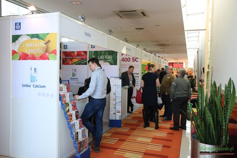 W holu przed salą konferencyjną swe stosika zorganizowało szereg firm z branży warzywniczej. Część wystawową zdominowały firmy nawozowe. Można było odwiedzić kilka stoisk i porozmawiać z przedstawicielami firmy Yara, Agrosimex, Intermag i Timac Agro. Ze swoją ofertą była także firma T. Mularski. Przy głównym wejściu okazały boks zagospodarowała firma Bayer, główny organizator wydarzenia. We wszystkich tych miejscach można było spotkać fachowych doradców, poprosić o pomoc czy zalecenia uprawowe. Degustacji produktów z warzyw – soków i zup można było dokonać przy stosiku firmy Marwit, jednego z współorganizatorów wydarzenia.