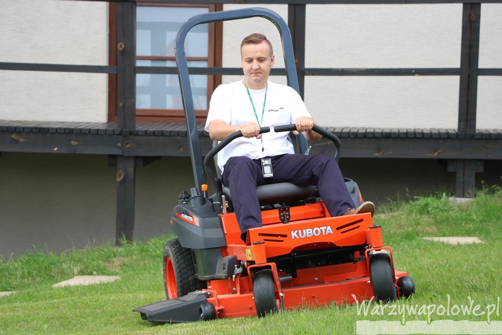 O nowościach w ofercie mówił Andrzej Zynek z firmy Kubota. Jedną z nich jest kosiarka Z122R. To urządzeie napędzane dwucylindrowym silnikiem benzynowym Kawasaki o poj. 726 ccm i mocy 19,2 KM. Posiada dwie niezależne przekładnie hydrostatyczne (HST) Wyróżnia się zerowym promieniu skrętu. Szerokość robocza to 107 cm. Kosiarka jest niewielka ale bezpieczna – spełnia wymogi unijnych regulacji. Sterowanie odbywa się za pomocą dźwigni sterujących. Istnieje możliwość zamontowania podłokietników, co pracę czyni wygodniejszą. Podłoga jest przestronna, oferuje dużo miejsca na nogi. Pozostałe elementy sterujące zostały ergonomicznie rozmieszczone, ich obsługa jest prosta, niemal intuicyjna. Maszyna posiada wyrzut boczny, nie ma kosza do zbierania trawy. Jest ona mulczowana przed podwójny wirnik. Kubota oferuje gwarancję do 4 lat w przypadku użytkowników niekomercyjnych. W ofercie firmy Kubota znajdują się też uniwersalne ciągniki kompaktowe z serii BX. To idealna maszyna do prac komunalnych, łącząca zalety kosiarki i ciągnika. Można ją wyposażyć w zróżnicowany osprzęt, jak choćby ładowacze przednie, czy niewielką koparkę. Silnik Kubota D902 rozwija moc 25,2 KM. Jedną z zalet tego rozwiązania jest możliwość pracy w kwaterach o dużych nachyleniu bez utraty smarowania. Ciagnik BX posiada 4 pary przyłączy hydraulicznych, po 2 z przodu i z tyłu. Posiada ona napęd dwustopniowy hydrostatyczny. Tylny TUZ ma udźwig 550 kg, WOM oferuje 540 obr/min. Przednie osie mają duży rozmiar, co ma znaczenie przy pracy z ładowaczem czołowym.