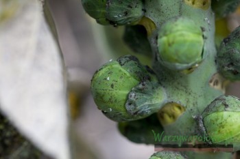 Mączlik warzywny w tym roku obserwowany była na wielu plantacjach brokułów, kalafiorów w liczebności wymagającej interwencji. Nie jest jednak ona łatwa, bowiem do zwalczania tego szkodnika na tej grupie warzyw dostępny tylko jeden środek – Movento 100 SC, który zresztą nie powinien być stosowany częściej jak 2 razy w sezonie. Szkodnik ten może być też ograniczany przez zabiegi innymi środkami używanymi do zwalczania szkodników warzyw kapustnych jak np. Proteus 110 OD. W największej liczności mączlik pojawił się jednak na kapuście brukselskiej, gdzie okazał się na tyle szkodliwy, iż doprowadził nie tylko do obniżenia plonu ale też praktycznie jego zniszczenia. 29 października na jednej z plantacji w okolicach Sannik (woj. mazowieckie) spotkałem się z widokiem jak poniższych zdjęciach.