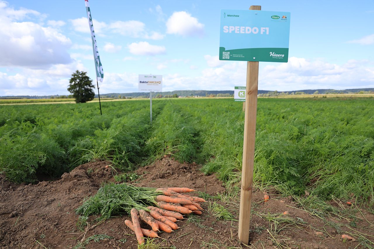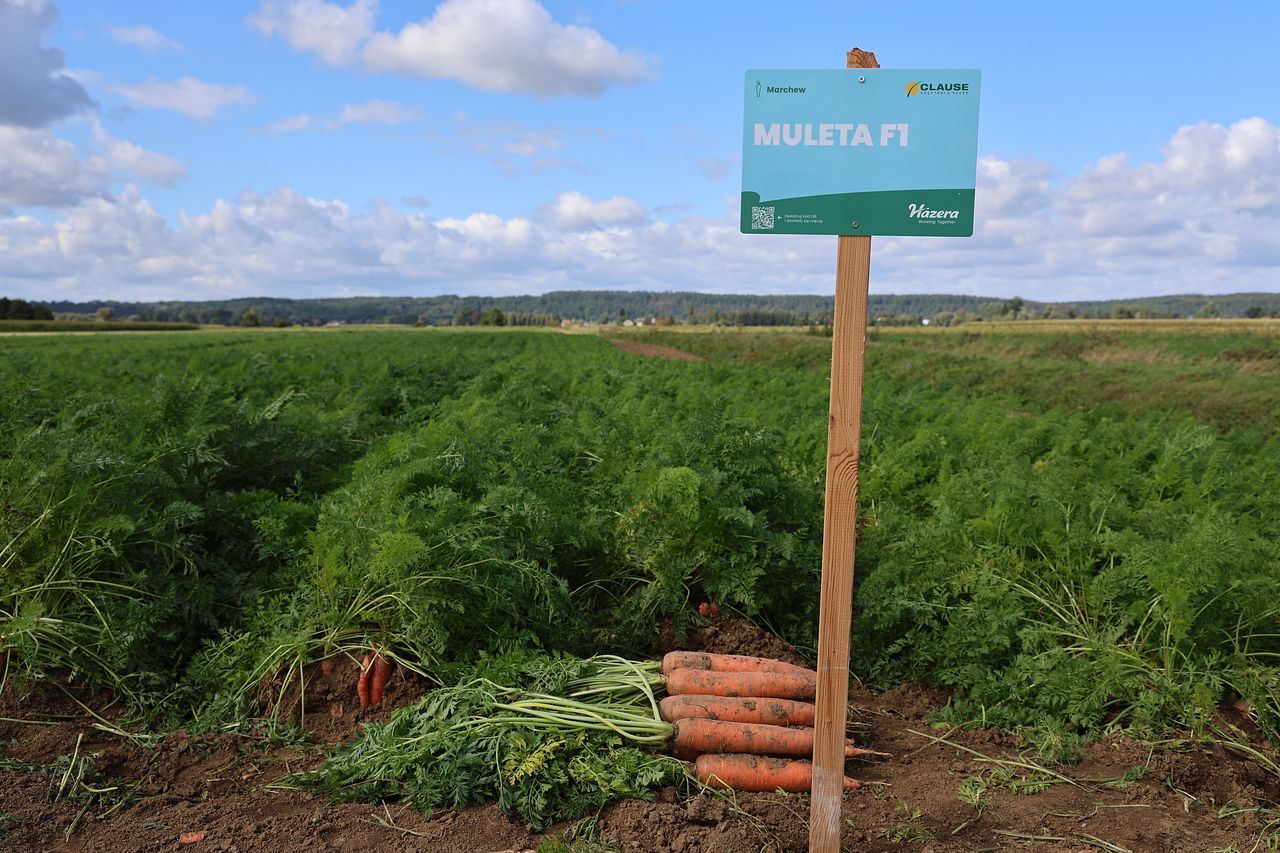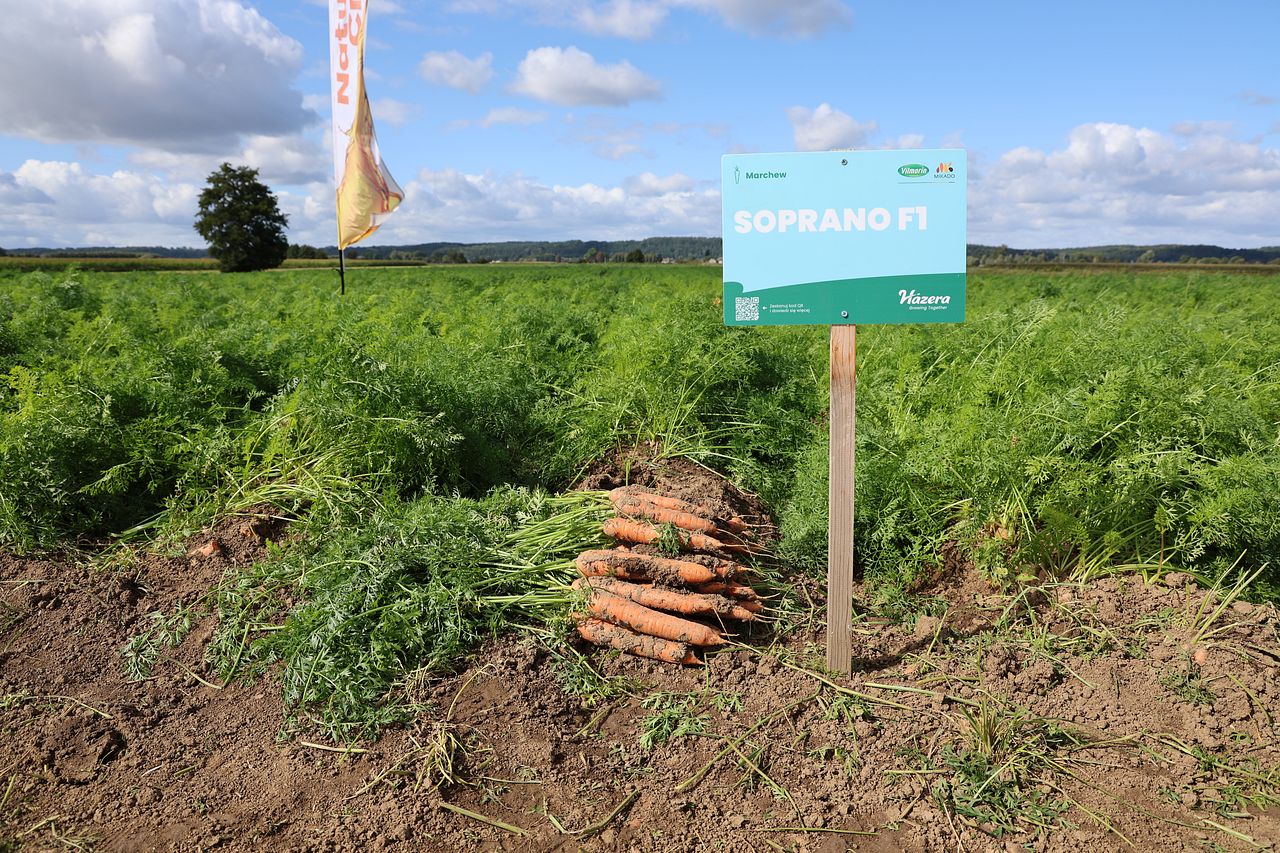 Producenci mogli porównać w praktyce kilka najważniejszych odmian. Wiesław Jakubowski z firmy Hazera Poland i Maria Rublewska zwrócili uwagę odwiedzających wydarzenie na odmianę Muleta F1 – standard przemysłowy, od lat ceniony za stabilny plon i wysoką zawartość suchej masy. Nowością była dostępna od dwóch lat w ofercie Hazera Poland odmiana Patzi F1, o bardzo dużych korzeniach i wyjątkowej przydatności do produkcji soków i przetworów dla dzieci. Maria Rublewska przekazała, że obie odmiany stanowią podstawę produkcji marchwi przemysłowej w gospodarstwie.