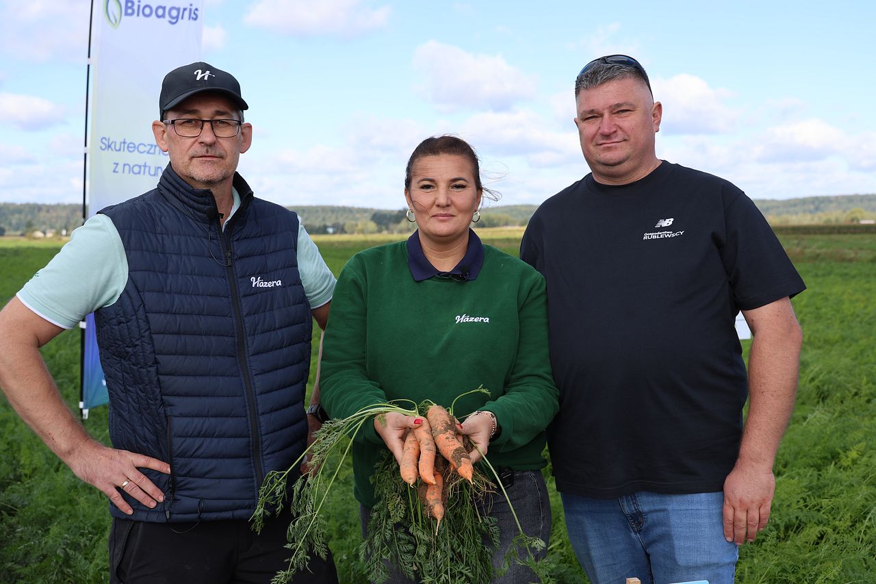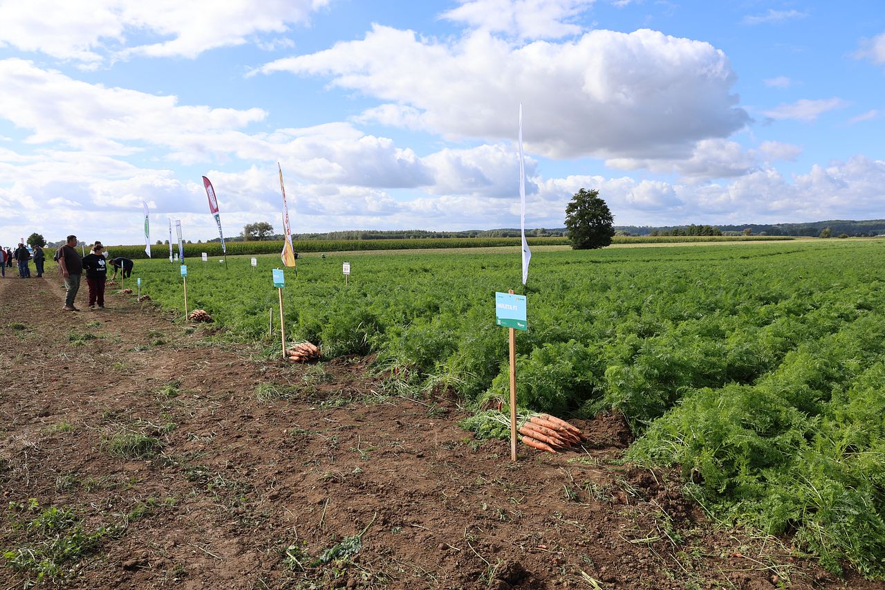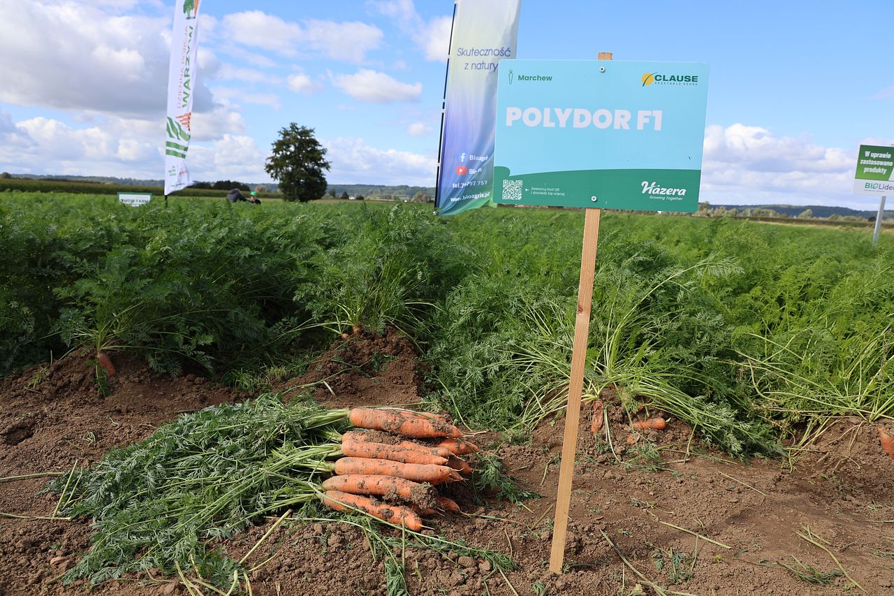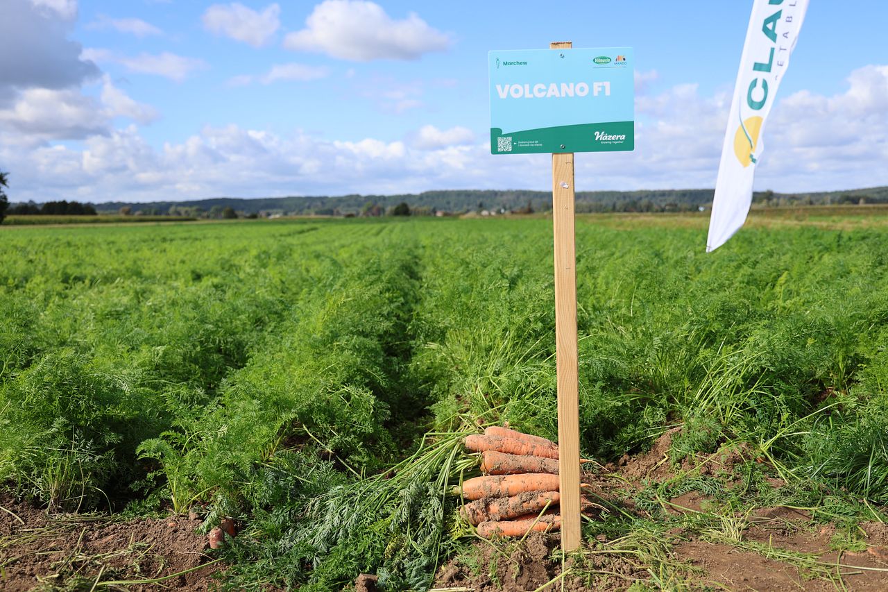 Producenci mogli porównać w praktyce kilka najważniejszych odmian. Wiesław Jakubowski z firmy Hazera Poland i Maria Rublewska zwrócili uwagę odwiedzających wydarzenie na odmianę Muleta F1 – standard przemysłowy, od lat ceniony za stabilny plon i wysoką zawartość suchej masy. Nowością była dostępna od dwóch lat w ofercie Hazera Poland odmiana Patzi F1, o bardzo dużych korzeniach i wyjątkowej przydatności do produkcji soków i przetworów dla dzieci. Maria Rublewska przekazała, że obie odmiany stanowią podstawę produkcji marchwi przemysłowej w gospodarstwie.