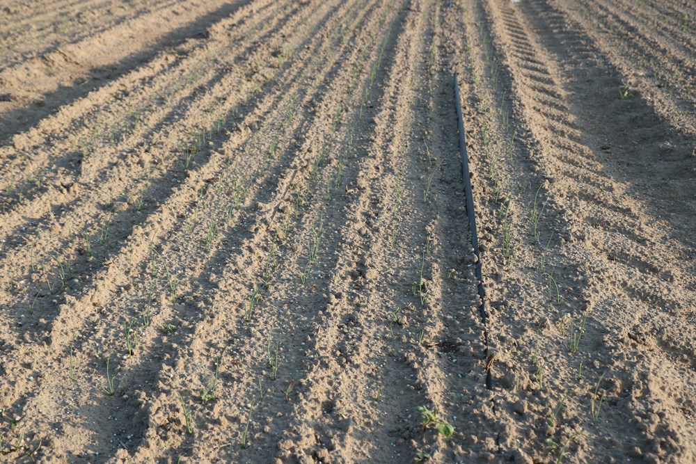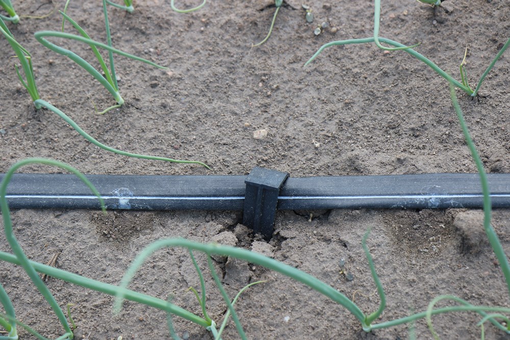 Niektórzy plantatorzy korzystają więc z taśm kroplujących. Są gospodarstwa w których zostały one porozkładane na sporych areałach, przekraczających niekiedy 5 ha. W przypadku cebuli, zależnie od rozstawu roślin, długość taśm wynosi kilkanaście km/ha, więc koszt ich zakupu stanowi 3-4 tys. zł/ha i jest ponoszony corocznie, gdyż w większości nie praktykuje się używania tych samych linii w kolejnym sezonie. W przypadku cebuli, inaczej niż ma to miejsce zazwyczaj na przykład w sadach czy jagodnikach, taśmy kroplujące można płytko zakopać w ziemi. Sprawia to, że nie przemieszcza ich wiatr i nie są wyeksponowane na mechaniczne uszkodzenia w równym stopniu, co taśmy znajdujące się na powierzchni. Ponieważ czas ich eksploatacji jest krótki i wynosi kilka miesięcy, kroplowniki znajdujące się pod ziemią pozostają drożne.