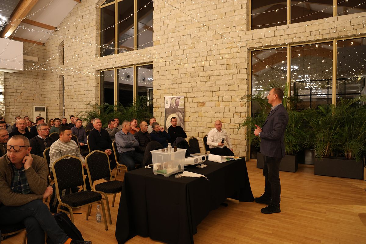 Uczestnicy zapoznali się również z przeglądem rozwiązań ochrony roślin od BASF. Przemyslaw Kostrzewski omówił m.in. herbicyd Stomp Aqua, schematy jego łączenia z metazachlorem oraz rolę fungicydów jak Signum czy Dagonis w ograniczaniu alternariozy i szarej pleśni. Podkreślał także przewagę, jaką daje zastosowanie preparatów oryginalnych nad produktami generycznymi. Zasygnalizował także najnowszy produkt w ofercie – Divexo, zaprojektowany do walki z mączniakiem rzekomym i zarazą ziemniaka.