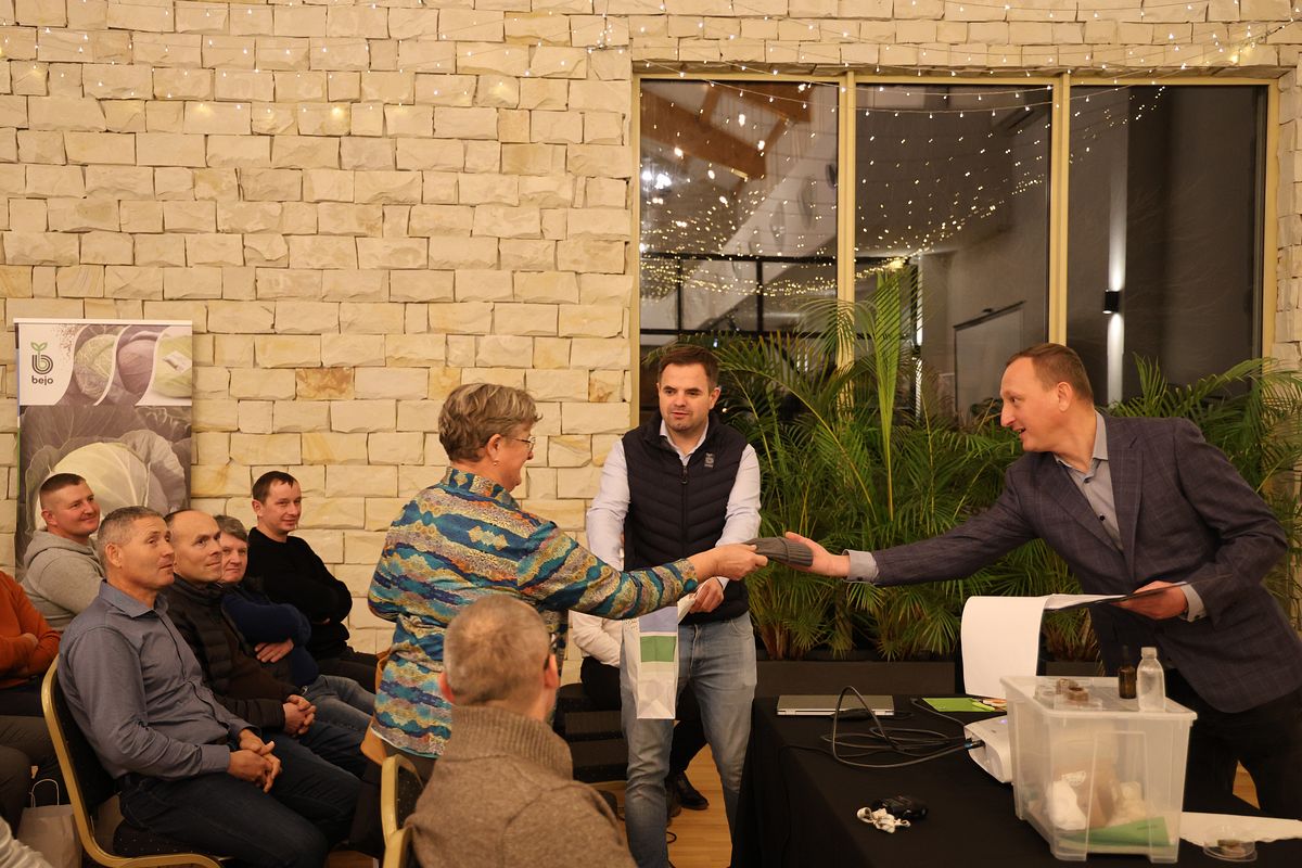 Spotkanie warzywnicze zorganizowane przez firmę Bejo 7 grudnia w Pobiedniku Wielkim zgromadziło wielu producentów z okolicy i nie tylko. Uczestnicy mogli zapoznać się z najpopularniejszymi odmianami kapust, marchwi, cebuli, selera i innych gatunków z aktualnej oferty firmy, a także zapowiedziami na kolejny sezon. Oprócz tego nie zabrakło wystąpień dotyczących ochrony, biostymulacji i dbania o kondycję gleby.
