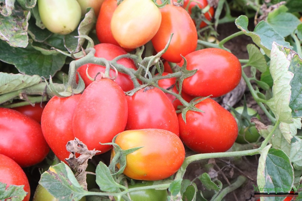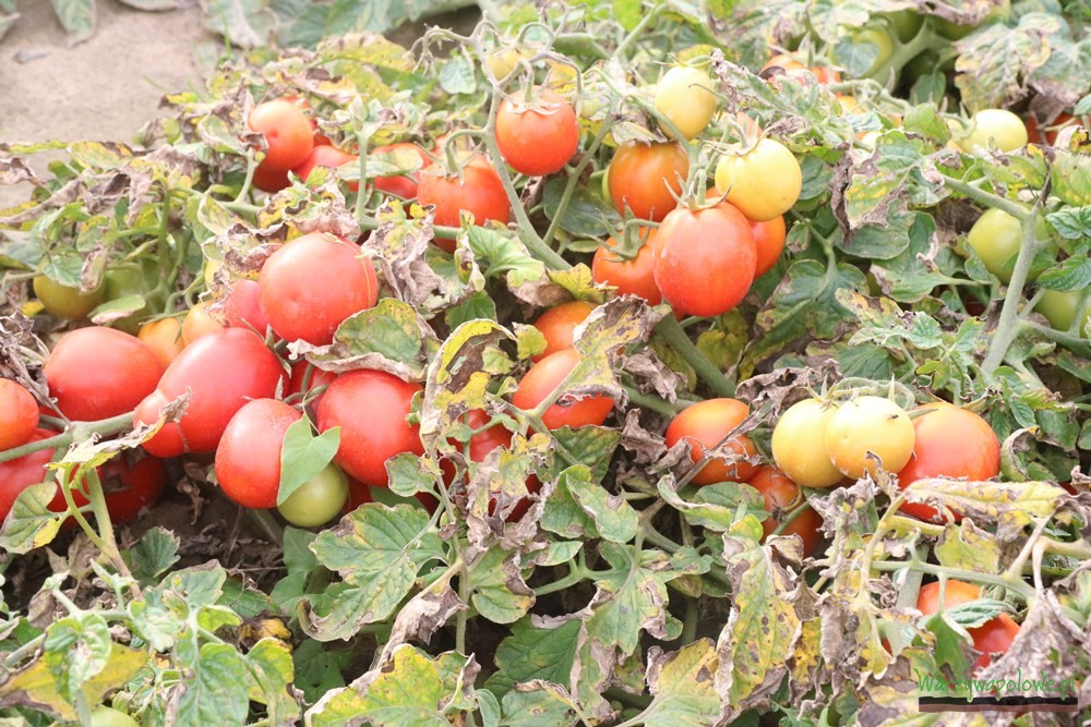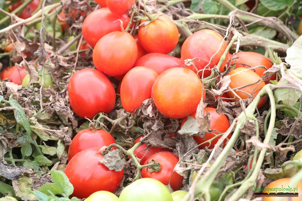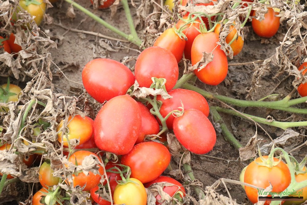 Na polu Państwa Wesołowskich, gdzie udali się uczestnicy spotkania, można było zobaczyć odmianę Miceno F1, która ma przeznaczenie uniwersalne – może być uprawiana z przeznaczeniem na przecier, do skrajania w kostkę, konserwowania czy wreszcie na świeży rynek. Wykształca owalne owoce o wielkości 90-120 g, pojedynczy krzew może dać ponad 7 kg plonu, co udowodnili zgromadzonym gościom przedstawiciele Syngenty, wyrywając jeden krzak i ważąc z niego owoce pomidora. Proszę zwrócić uwagę, że ok. połowa z nich jest wciąż zielona i z pewnością jeszcze nabrała by masy. – mówił o krzewie z uznaniem Marek Zieliński. To jedna z nowszych odmian, podobnie jak Ifox F1. Owoce tej odmiany także mają uniwersalne zastosowanie, są jednak nieco mniejsze. Ich masa sporadycznie przekracza 100 g. Dla zwolenników dużych pomidorów Syngenta proponuje odmianę Bobcat F1. Owoce osiągają masę 180-250 g, co sprawia że należy je zrywać ręcznie. Nadają się do produkcji przecieru i na świeży rynek. Dodatkowo w janowickiej kolekcji zgromadzono kilka odmian, które już od dłuższego czasu są obecne w ofercie firmy Syngenta. Jedną z takich propozycji jest powszechnie ceniony Asterix F1. To odmiana, której owoce mają szerokie zastosowanie. Ich masa zawiera się w przedziale 80-110 g. Dość podobnych rozmiarów pomidory rodzi odmiana Ulisse F1, choć maja one zupełnie inny, podłużny kształt. Nieco większe, kuliste owoce uzyskać można uprawiając odmianę Chilbi F1, zaś drobniejsze, ale za to dobrze spisujące się w zbiorze kombajnowym dzięki uprawie odmian Fortix F1.