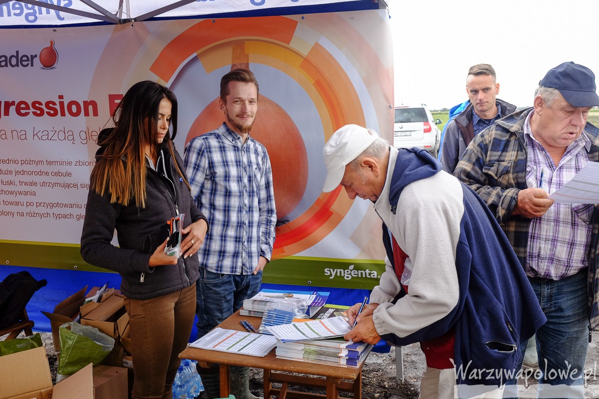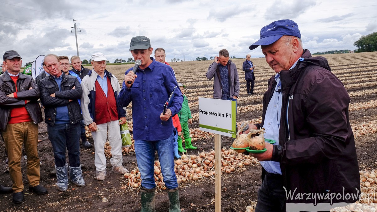 Witając przybyłych gości Marek Zieliński z Syngenta podziękował gospodarzowi spotkania Sławomirowi Weber za całoroczną współprace i pomoc w przygotowaniu kolekcji odmian. W miejscu gdzie odbywało się spotkanie rosła przede wszystkim odmiana Progression F1 (30 ha) uzupełniona kolekcją odmian cebuli Syngenta. Były to dwie odmiany typu hiszpańskiego Bratko F1 i Banko oraz flagowe rijnsburgery czyli Vison F1, Progression F1, Wellington F1, Medaillon F1 i testowany jeszcze numer SG 57.