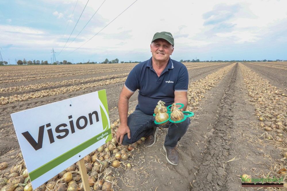 Takimi właściwościami charakteryzują cebule typu rijsnburger. Wśród nich sztandarową odmianą w portfolio Syngenta jest Vision F1, znana i ceniona przez producentów odmiana, która zapewnia wysokie plony i pozwala uzyskiwać niezwykle twarde cebule z mocną łuską i dobrymi właściwościami przechowalniczymi. Dobrze oceniana jest odmian Progression F1, która zapewnia duże kalibry i bardzo dobry plon. Odmiana ta jest nieco późniejsza od Vision, ale dzięki temu i przy utrzymaniu dobrej zdrowotności szczypioru pozwala uzyskiwać wysokie plony. Doskonale nadaje się do obierania mechanicznego i pakowania w worki (z takim właśnie przeznaczeniem uprawia ją Sławomir Weber). Odmiana Action F1 charakteryzuje się nieco ciemniejszą łuską niż dwie poprzednie, ale pozwala również uzyskiwać wysokiej jakości cebule. Przy tej odmianie wskazana jest uprawa w zagęszczeniu 2,6 jednostki/ha. Mission F1 to z kolei wczesna odmiana. Okazuje się być bardzo dobrze przystosowana do polskich warunków uprawy i wymagań rynkowych – daje bowiem cebule o złocistej łusce, z cienką ładnie zasychającą szyjką co pozwala na dobre jej przechowywania. Kolejna w asortymencie odmianowym z grupy rijnsubrger to Wellington F1. Bardzo dobrze sprawdziła się ona w regionie Ożarowa Mazowieckiego gdzie, jak zapewniał obecny na spotkaniu Mariusz Kwiatkowski, ceniona jest za złocisty kolor łuski i bardzo dobre właściwości przechowalnicze. Niektórzy producenci w regionie podwarszawskim kończyli sprzedaż cebul tej odmiany w połowie sierpnia, przy zachowaniu bardzo dobrej jakości – podkreślał Mariusz Kwiatkowski.