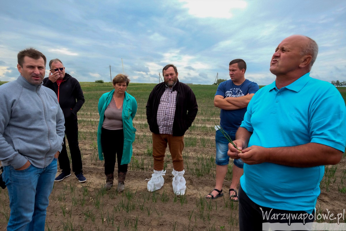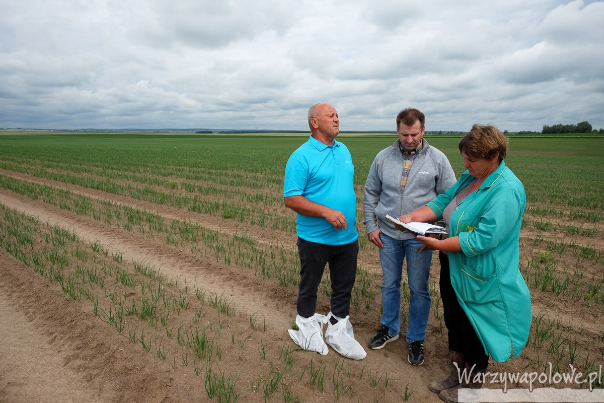 Pierwsze z odwiedzanych gospodarstw położone w regionie Mińska to Mińskaja Fabryka Warzyw. Cebula uprawiana jest na łącznej powierzchni przeszło 40 ha, a informowała o niej główna agronom – Tamra Birulcik. Głównym problemem tego sezonu okazał się brak opadów deszczu. Od początku uprawy cebuli – siewy realizowano 27 kwietnia – tylko dwukrotnie spadł niewielki deszcz, koło połowy czerwca i w dniu naszej wizyty, czyli 22 czerwca. Takie warunki w połączeniu z wysokimi temperaturami (podobnie jak w Polsce) spowolniły wzrost roślin. Dodatkowo miały na to wpływ herbicydy, zwłaszcza wysoka dawka pendymetaliny zastosowanej przedwschodowo (4 l preparatu zawierającego pendymetalinę/ha). Oprócz tego do walki z chwastami stosowano Goal w dawce 0,25 l/ha. Tak wysokie jednorazowe dawki pendymetaliny, jak tłumaczył Władysław Tokarczyk, ekspert z Syngenta, nie są uzasadnione, gdyż hamują wzrost roślin. Zdecydowanie lepszym rozwiązaniem jest zastosowanie pendymetaliny w dawkach dzielonych, gdzie przedwschodowo podaje się 0,75 – 1,2 l gotowego środka/ha (wyższa dawka na cięższych glebach). By zniszczyć obecne jeszcze na plantacji chwasty Władysław Tokarczyk zalecił zastosowanie preparatu Boxer w dawce 2 l/ha, do którego można dodać 100 ml/ha Goalu.