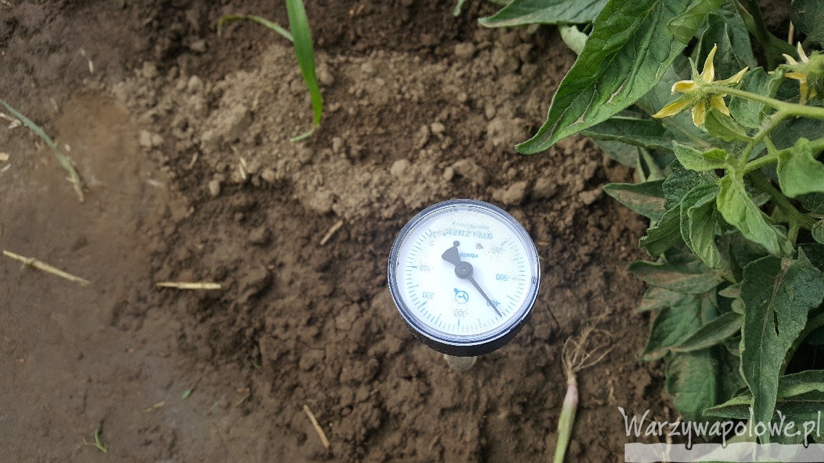 Do nawożenia używano ponadto instalacji z nawadnianiem kroplowym (fot. 1). Potrzeby irygacji kontrolowano za pomocą tensjometru (fot. 2). Przy takiej pogodzie przesuszenie gleby mogło doprowadzić do jej nieodwracalnego zaskorupienia i negatywnie odbić się na wysokości plonu, a także na jego jakości, pośrednio przyczyniając się do wystąpienia suchej zgnilizny wierzchołkowej (fot. 3). To zaburzenie fizjologiczne często występowało głównie na pierwszych owocach zwłaszcza tam, gdzie rolnicy nie radzili sobie z systematycznym nawadnianiem. Na opisywanej plantacji 2 i 3 tygodnie po posadzeniu rozsady podano Kristalon Żółty (3 kg/ha), a w 5. tygodniu po posadzeniu Brassitrel Pro (3 l/ha). Zabieg wykonano w połączeniu z fungicydem na krótko przed kwitnieniem. Warto przypomnieć, że mieszalność produktów YaraVita ze środkami ochrony roślin można sprawdzić na stronie http://www.tankmix.com (jest tam również dostępna wersja polskojęzyczna).