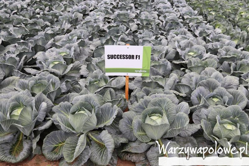 Inną odmianą, którą chciałbym szczególnie wyróżnić jest Succesor F1. Wykształca ona nieco mniejsze główki niż poprzednio wspomniana. Cechuje się jednak bardzo dobrą zdrowotnością, nie przysparza żadnych poważniejszych problemów w uprawie. Inną zaletą jest jej duże wyrównanie oraz możliwość sterowania. Przy większym zagęszczeniu uzyskujemy towar premium na świeży rynek, a przy mniejszym okazałe główki, których masa dochodzi do 6 kg. – informował Z. Siekacz. Okres wegetacji tej odmiany to 120-130 dni. Wykazuje niskie porażenie wciornastkiem, a utrzymaniu jej w dobrej kondycji sprzyja dodatkowo silny nalot woskowy na liściach.