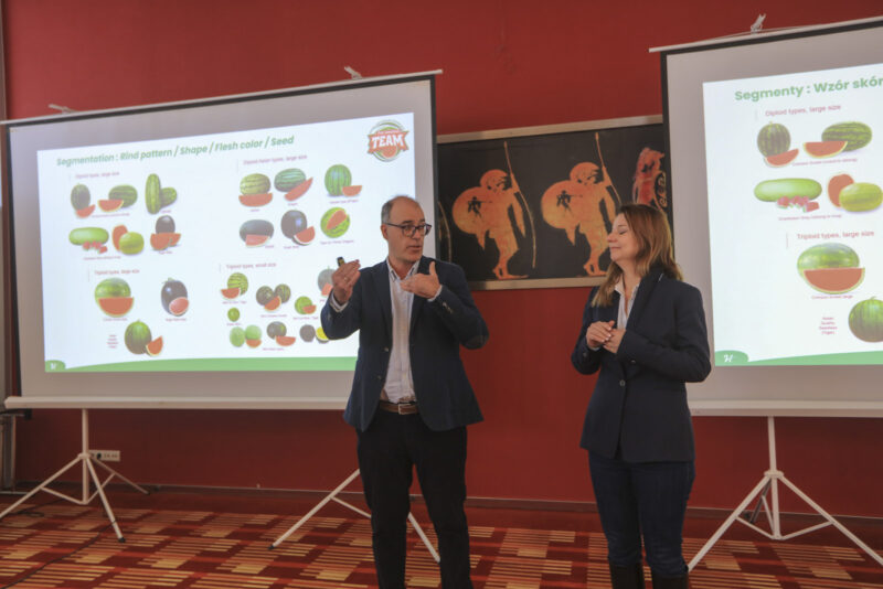 O możliwościach uprawy arbuzów w kontekście szerokiego asortymentu dostępnych odmian mówił Federico Puyo z Hiszpanii. Zwrócił on uwagę, że obecnie na rynku funkcjonuje bardzo duża grupa odmian podzielonych na różne typy, przy czym Hazera koncentruje się na arbuzach mini należących do odmian triploidalnych, czyli bezpestkowych. Liderami w produkcji tego typu arbuzów są Stany Zjednoczone. W odniesieniu do Europy największy udział w eksporcie arbuzów ma Hiszpania, która odpowiada za 27% rynku, następnie Maroko i Meksyk po 10% oraz Włochy z udziałem 8%. To właśnie Hiszpania i Maroko są głównymi dostawcami arbuzów do Europy w sezonie letnim. Hazera posiada obecnie 43% udziału w rynku arbuzów mini bezpestkowych. Podkreślano, że nowo wprowadzane odmiany muszą łączyć wysoką wartość produkcyjną, bardzo dobre walory smakowe oraz zdolność do zdobycia stabilnej pozycji na półkach sieci handlowych.