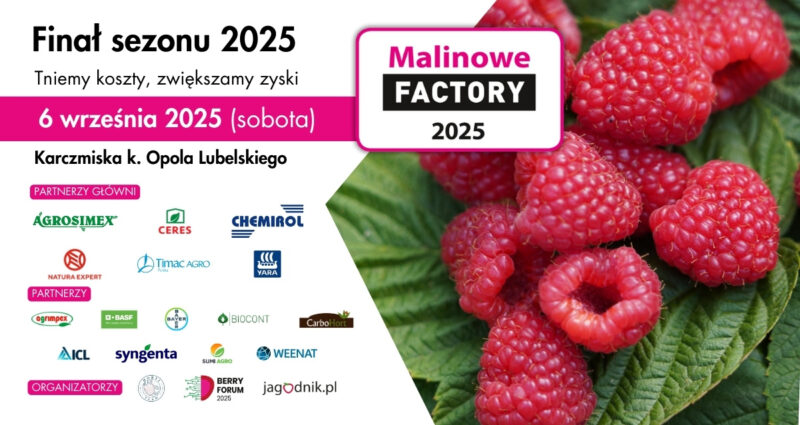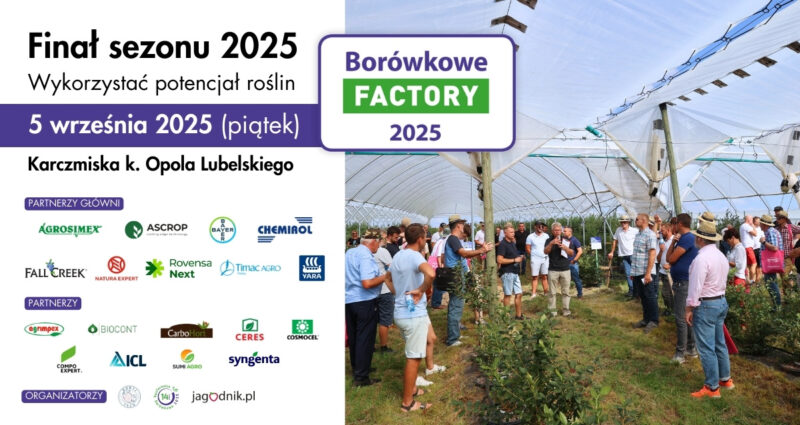 Wrzesień to wyjątkowy czas dla plantatorów – jesteśmy w samym środku sezonu malinowego, a jednocześnie rozpoczynają się zbiory borówek. To idealny moment, by zaplanować udział w finałowych szkoleniach w ramach projektów Borówkowe Factory (5 września) oraz Malinowe Factory (6 września), które tradycyjnie odbędą się w gospodarstwie dr. Pawła Krawca w Karczmiskach.