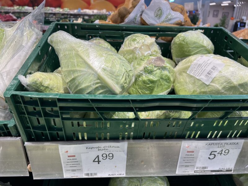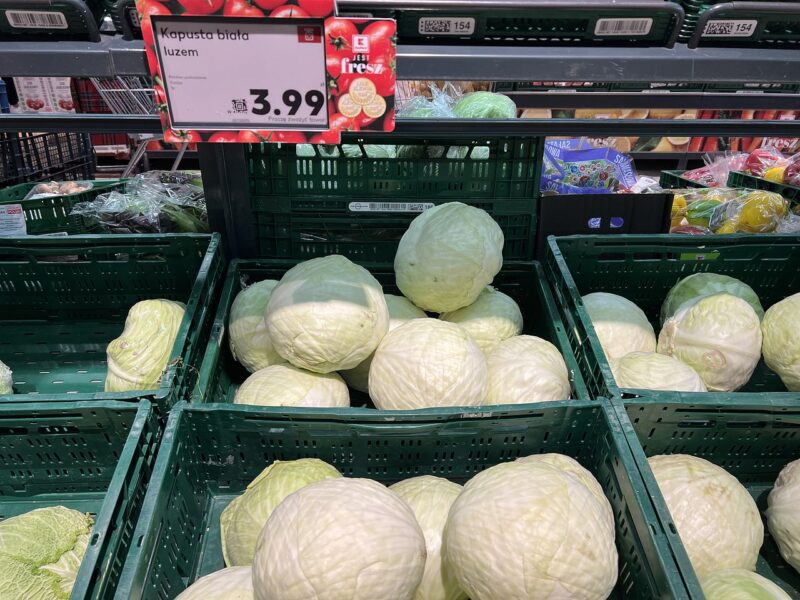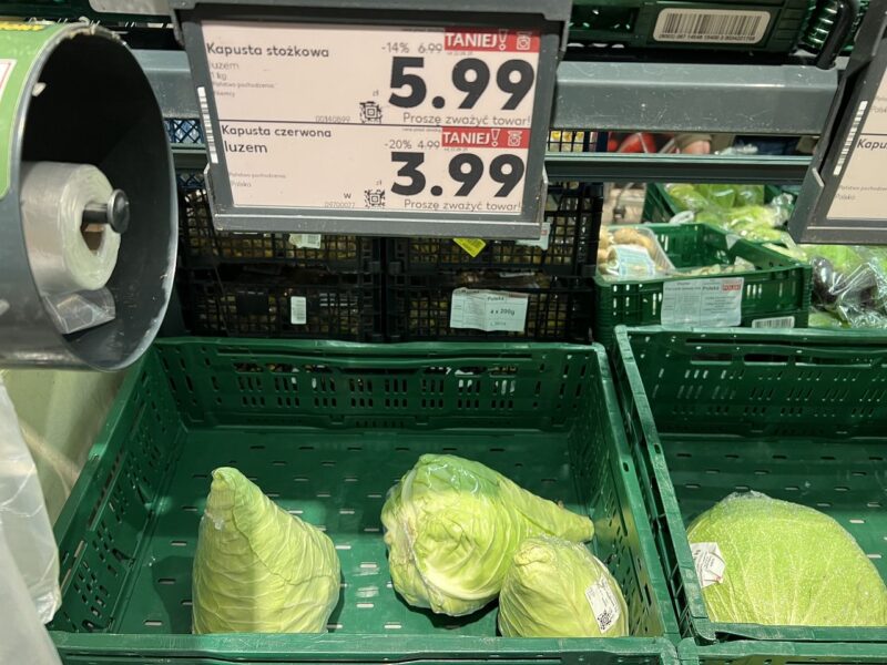 Podczas gdy producenci kapusty z ledwością uzyskują ceny pozwalające na odzyskanie poniesionych kosztów, w sieciach handlowych nie widać szczególnie niskich cen. Za kapustę białą trzeba zapłacić od 1,99 do 3,99 zł/kg. Nieco droższe są kapusty włoskie, pekińskie czy stożkowe lub z przeznaczeniem na gołąbki. Patrząc na ceny w supermarketach klienci mogą nawet nie dostrzec problemów polskich producentów.