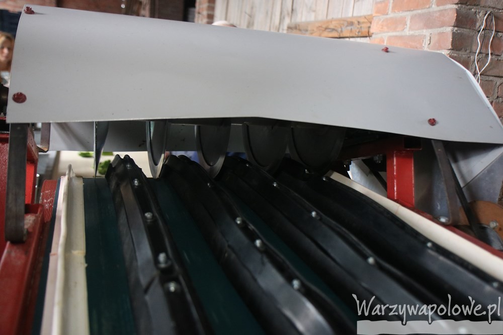 Zbudowana przez Sławomira Kasperka maszyna do krojenia papryki nie jest konstrukcją bardzo skomplikowaną. Pierwsze obserwacje i wyliczenia dowiodły jednak, że podnosi ona efektywność krojenia o 100% w porównaniu do pracy wyłącznie ręcznej. Owoce są podawane na zsyp póki co ręcznie, ale istnieje możliwość zmechanizowania tego zabiegu poprzez zastosowanie wywrotnicy. Stamtąd trafiają na prowadnicę z pasami klinowymi, które układają je równolegle do kierunku pracy podajnika. Tu przydaje się jedna osoba, która sprawdza położenie owoców. Jednak z uwagi na to, że w zasadzie 100% owoców samoistnie właściwie się pozycjonuje, nie jest to konieczne. Następnie owoce są rozcinane przez obrotowe noże. Po przecięciu trafiają na stół rewizyjny, gdzie ręcznie wyrywa się z nich dna nasienne i ewentualnie koryguje niezadowalające cięcia wykonane mechanicznie. Być może nie użyto tu najlepszych, najwłaściwszych materiałów, być może trochę za późno rozpoczęto prace nad maszyną. Efekty jednak są dobre, a znając zapał i pomysłowość gospodarza, urządzenie to po zimowych poprawkach będzie pracować o wiele lepiej w kolejnym sezonie. – mówił Henryk Zając.
