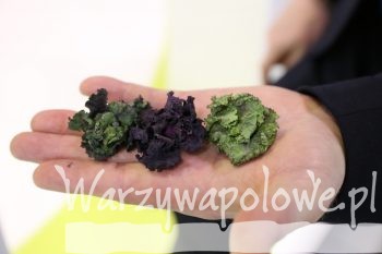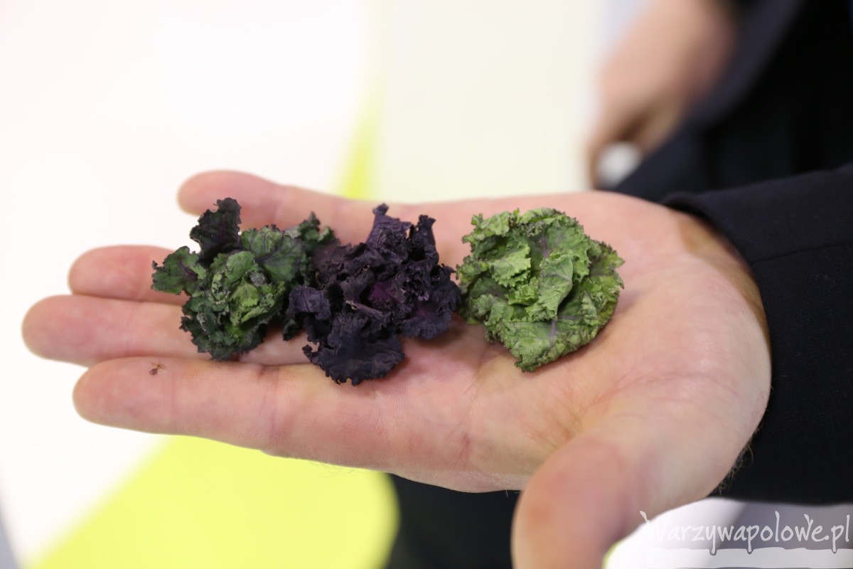 Frisetta (krzyżówka jarmuża i brukselki) prezentowana przez firmę Syngenta w trzech kolorach