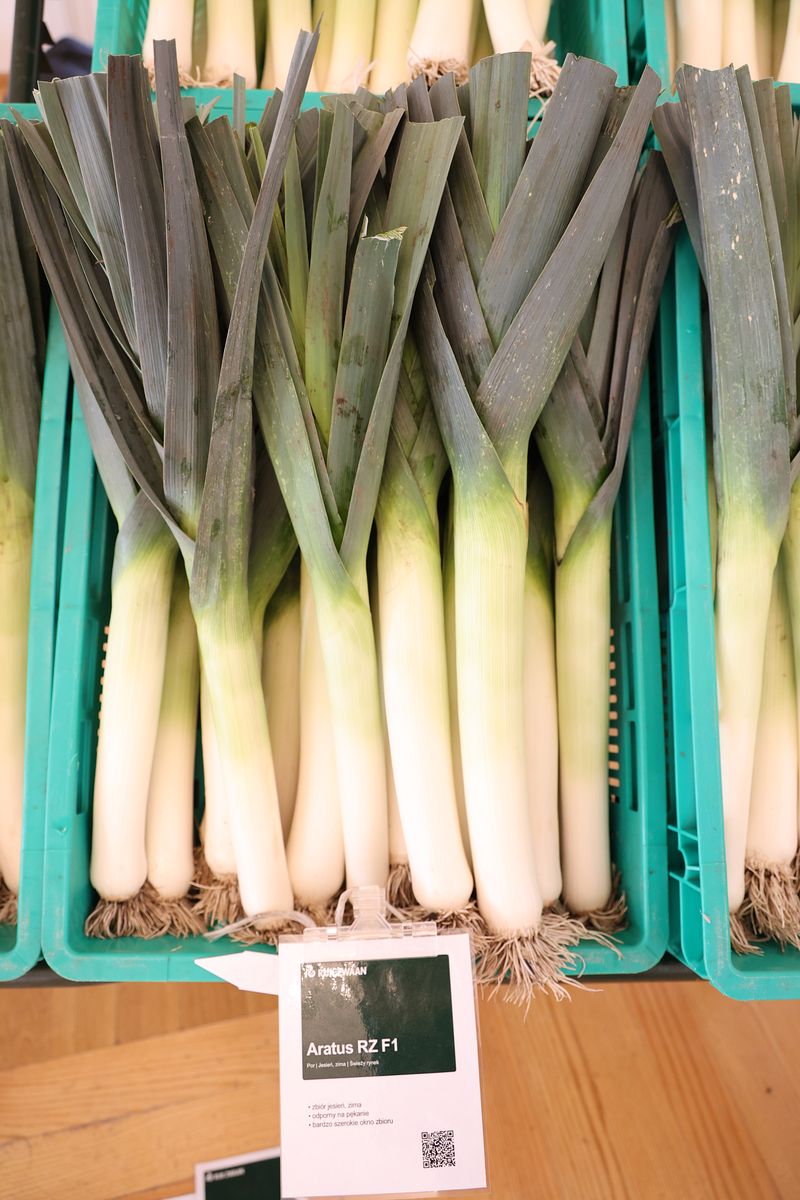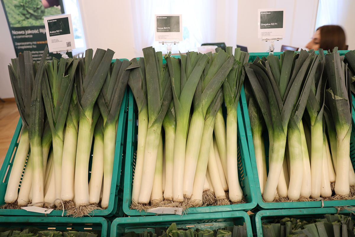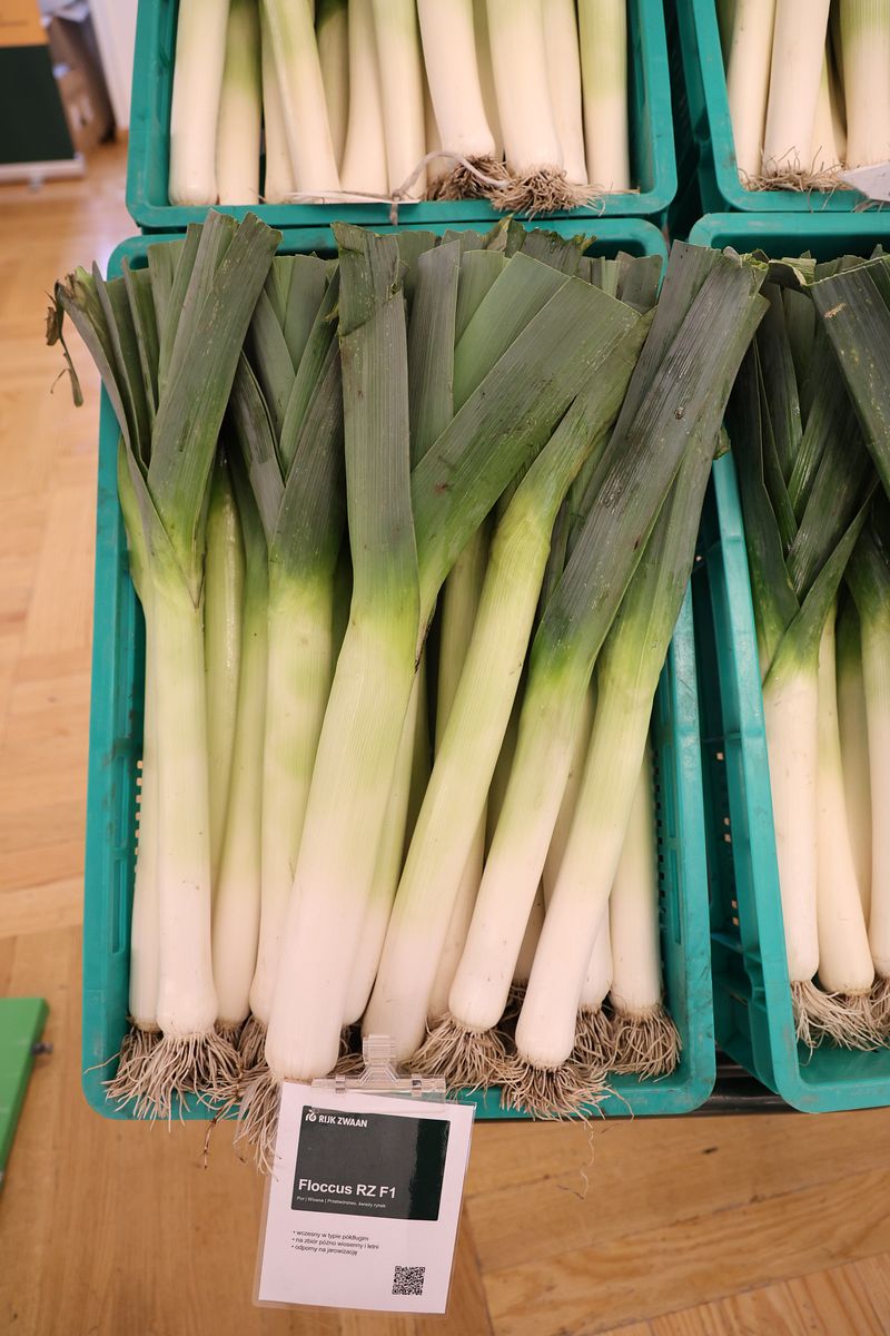 Bogato prezentowała się oferta porów Rijk Zwaan prezentowanych w Wierzbnie. Specjalista tej firmy przekazał, że do niedawna oferta firmy była węższa, ale obecnie w portfolio znajduje się kilka bardzo konkurencyjnych odmian o szerokich pakietach odporności na grzyby, bakterie i szkodniki. Wśród nich są m.in. odporności na alternariozę, bakteriozy, fytoftorozę, rdzę pora i wciornastki – a niektóre odmiany posiadają pełny pakiet odporności. Tomasz Nożykowski poinformował, że to nowa generacja odmian, które łączy także łatwość czyszczenia po zbiorze. Jest to cecha, która generuje oszczędność czasu, pieniędzy i pracy, dlatego stała się podstawą podczas selekcji nowych odmian.