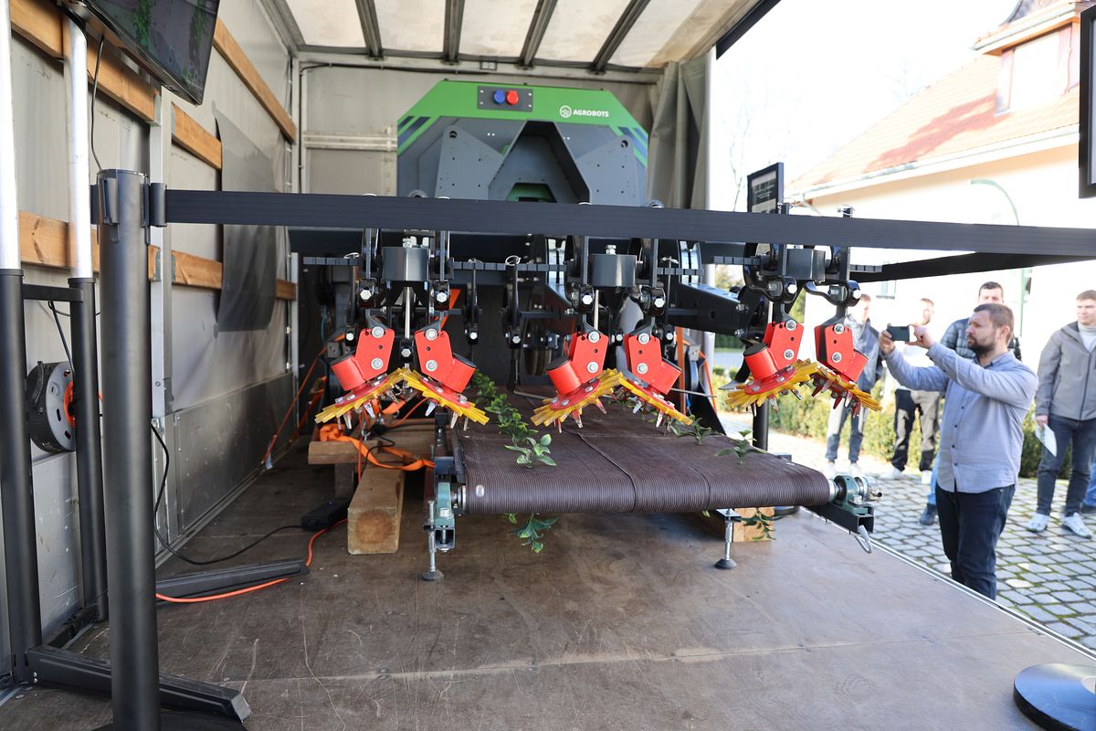 Firma Agrobots zaprezentowała zebranym producentom swoją maszynę – robota pielącego, który dzięki zaawansowanym systemom wizyjnym, czujnikom i wykorzystaniu sztucznej inteligencji mechanicznie usuwa chwasty z upraw, co pozwala na ograniczenie stosowania herbicydów i sprawia, że sam proces jest szybszy i łatwiejszy.