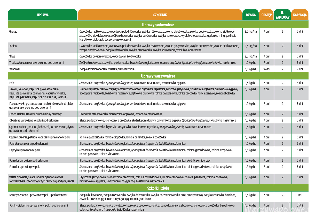 W ostatnich dniach znacznemu rozszerzeniu uległa etykieta i zakres stosowania dla insektycydu AFFIRM 095 SG. Może być on już stosowany do zwalczania wielu szkodników warzyw kapustnych. W uprawie brokułów, kalafiorów, kapusty głowiastej białej, czerwonej, włoskiej, pekińskiej, kapusty brukselskiej i jarmużu zwalcza szereg szkodników: bielinek rzepnik, tantniś krzyżowiaczek, piętnówka kapustnica, błyszczka jarzynówka, słonecznica orężówka, bawełnówka egipska, Spodoptera frugiperda, światłówka naziemnica, piętnówka brukiewka, rolnica gwoździówka, rolnica czopówka, rolnica panewka, rolnica zbożówka. Przy tak szerokim spektrum działania AFFIRM staje się uniwersalnym i niezastąpionym insektycydem do ochrony całej grupy warzyw kapustnych.