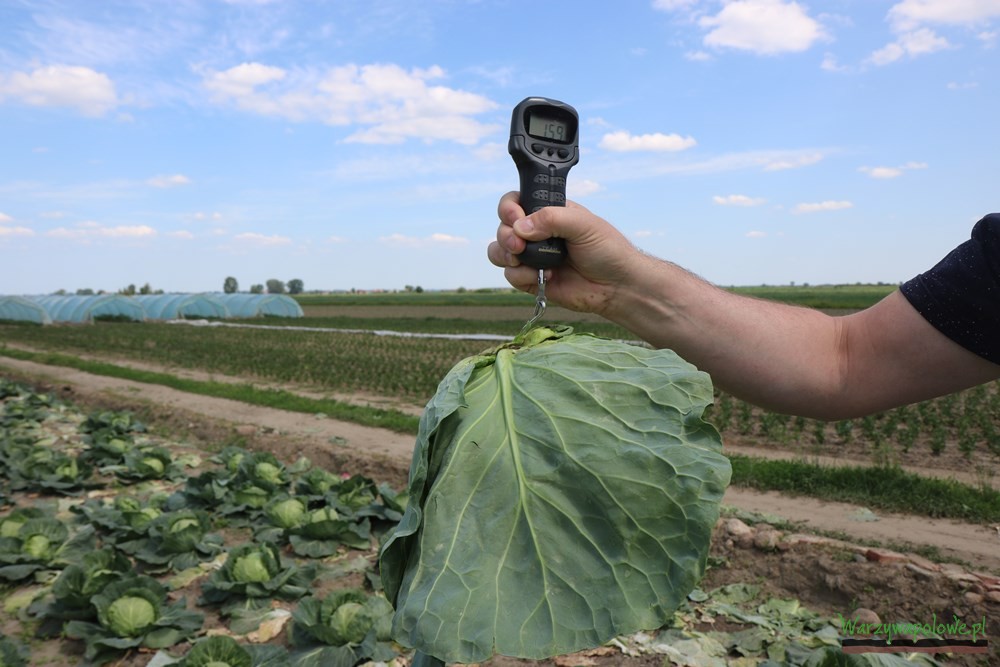 Kapusta odmian ‘Emily F1’ i ‘Delight Ball F1’ które uprawia się w gospodarstwie Tomasza Florczaka i Śniegów sadzone były pod folią 27-28 lutego, a pod włókninę około 10 marca. Pierwsza z wymienionych odmian ma okres wegetacji ok. 65 dni, druga 60. Można je sadzić w dużym zagęszczeniu, nawet do 60 tys. szt./ha. Zaletą ‘Emily F1’ jest wysokie osadzenie główki, dzięki czemu nie podgniwa od spodu. Są one dość spore jak na tak wczesną odmianę, gdyż ich masa wynosi ok. 2 kg i mają atrakcyjny, kulisty kształt. Dzięki dobremu wyrównaniu zbiór staje się łatwiejszy. Liście mają odcień jasnozielony, a rośliny cechuje wysoka trwałość polowa. Odmiana kapusty ‘Delight Ball’ nie wykształca główek o równie okazałej wielkości, co ‘Emily F1’, ale także ma walory, które czynią ją atrakcyjną propozycją dla rodzimych ogrodników. Wykazuje wysoka odporność na jarowizację, dlatego można ją rekomendować do najwcześniejszych nasadzeń. Jest też bardzo trwała w produkcji polowej, ale także dobrze sprawdza się w transporcie i długo zachowuje świeżość pozbiorczą.