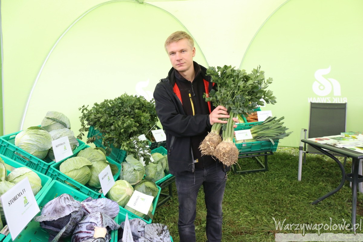 Na stoisku firmy Rijk Zwaan szczególnie promowano najnowszą odmianę selera o nazwie Merga F1 to 140-dniowy seler, który ma bardzo dużą odporność na jarowizację, odmiana ta powinna być sadzona od 16-20 tygodnia roku. Ma okrągły korzeń, z mała brodą korzeniową, nać odporna na wiele chorób, w tym oczywiście na septoriozę. Odmiana ta według przedstawicieli firmy może okazać się w najbliższym czasie jedną z chętniej uprawianych odmian selera. Według Tomasz Nożykowskiego z firmy Rijk Zwann, na uwagę zasługuje również marchew odmiana Fidra F1, 120-dniowa, w typie nantejskim. Jest bardzo smaczna i słodka, ma ładnym pomarańczowym kolor i jest bardzo dobra do sprzedaży na świeżym rynku. Wartym uwagi jest buraczek Betty F1, który ma ładny, kulisty kształt, dający bardzo wysoki i wyrównany jakościowo plon. Z kapust na uwagę zasługuje Topma F1, o około 80-dniowym okresie wegetacji, jest to odmiana typowa na świeży rynek, cechująca się się bardzo dużą zdrowotnością. W przypadku kalafiorów do uprawy na rynek jesienny wartą uwagi jest odmiana Boyabat F1, o około 90-dniowym okresie wegetacji, mający ciężkie, zbite róże o masie 2,3 kg, bardzo dobre do różyczkowania, doskonałe do mrożenia oraz na świeży rynek, tam gdzie liczy się masa. Odmiana ta ma duży mocny system korzeniowy, a przez to jest odporna na okresowe niedobory wody.