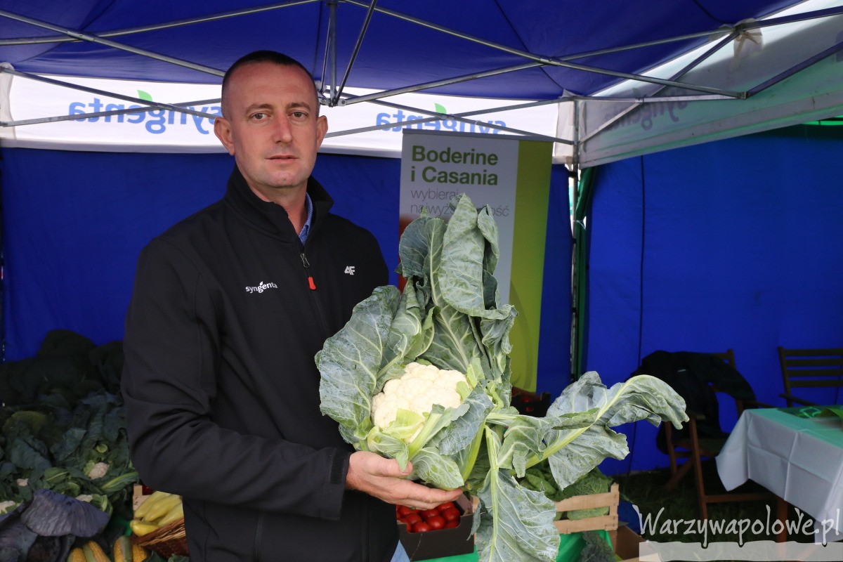 Rafał Żmuda z firmy Syngenta spośród prezentowanych odmian zwracał uwagę m.in. na dwie nowe odmiany kalafiorów: Guideline F1 oraz Almagro F1, które doskonale nadają się do uprawy nawet w czasie bardzo ciepłego lata. Potwierdziło się to w tym roku w Małopolsce, gdzie w okresie ich wzrostu temperatura w ciągu dnia często zbliżała się do 36oC. Dodatkowo odmiany te charakteryzują się bardzo dobrą odpornością na choroby. Wartą uwagi jest również nowa, średnio-wczesna odmiany kapusty Gallican F1, która ma wysoko osadzoną główkę, duże okno zbiorcze i mała podatność na pękanie. Wcześniejszą od niej odmianą do zbioru w okresie lata jest Casitor F1, który ma bardzo silną okrywę woskową, a przez to jest mniej porażana przez szkodniki, mało podatna na pękanie. Jest to typowa odmiana świeży rynek, o masie główek do 3 kg. Jeśli ktoś potrzebuje kapusty o większej masie, wtedy w regionie igołomskim, chętnie sięgał po Ringtona F1, którego główki w ciągu 90 dni osiągają masę nawet 4 kg. Chętnie uprawianą w tym regionie odmianą kukurydzy cukrowej jest Overland F1, która tworzy duże kolby, ładnie obsadzone ziarniakami – informował R. Żmuda.