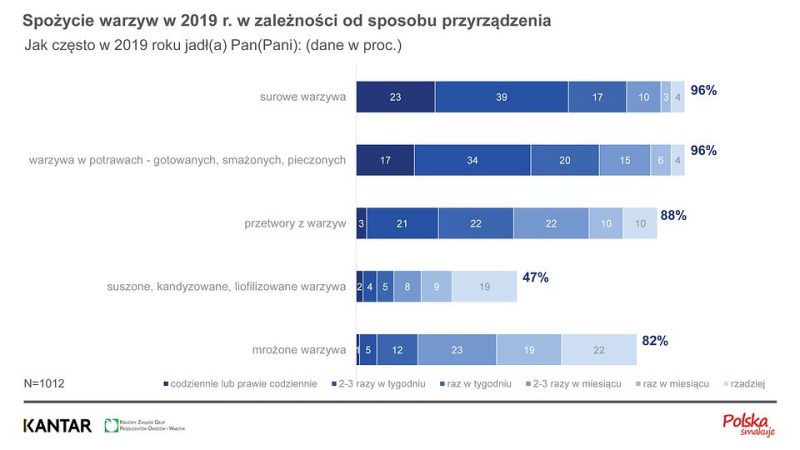 Niemal wszyscy Polacy jedzą przetwory, najczęściej są to kiszonki, dżemy, soki, jednak z mniejszą częstotliwością niż warzywa i owoce surowe lub w potrawach. Nieco mniejszą popularnością cieszą się mrożonki